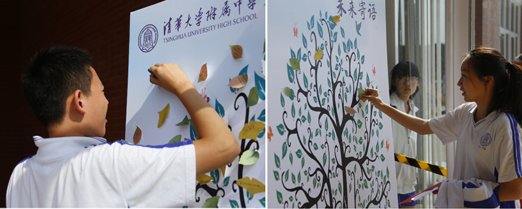 同学们把心愿贴粘在愿望树上
