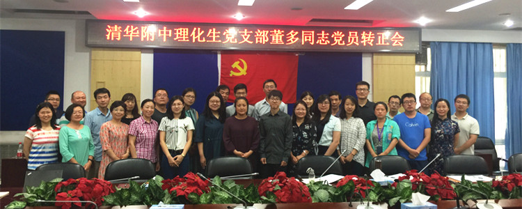董多同志由预备党员转正的会议严格按照规范的程序进行。先由董多同志汇报了自己在预备期的表现,重点谈及他在此期间的理论学习过程和思想动态,并重点介绍了入职一年来在初三年级的工作情况,客观分析了自己的成绩和进步、缺点与不足,并表明继续努力和加强学习的态度和决心,之后,提出转为正式党员的请求。李书霞同志作为化学组教研组长及支委成员介绍了董多的情况,特别提到他作为90后的清华毕业生能很快实现角色转变,全身心投入到一线教学和实习班主任工作中,得到了学生和同行的一直好评。