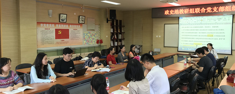 政史地党支部书记宋薇老师以2018年中考(历史)真题为导入,就“马克思主义对苏俄与中国革命影响的对比”进行主题讨论。支部党员轮流朗读“习近平谈话”的重要篇章,分别从马克思的人生经历、马克思主义的实践本质、马克思基本原理与中国实际结合等方面进行有关交流。