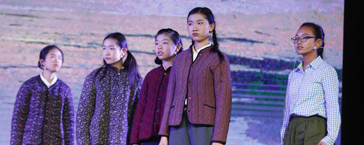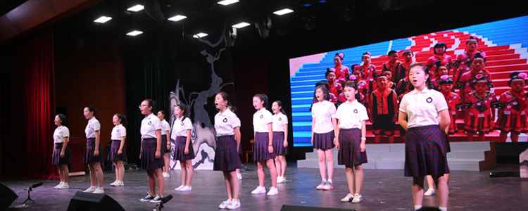 视觉盛宴过后是同学们激情洋溢的诗歌朗诵《少年中国说》。气势恢宏、振奋人心的诗句,诉说着新时代青少年学子的责任与担当,一度将现场气氛推向高潮。随后,城乡学生代表朗诵《我相信》,伴随着大屏幕上播放的“双师课堂”共建行动宣传片,在场师生无不为中小学艺术普及教育“双师课堂”这项美人之“美”的育人工程所感动。