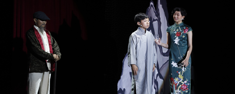 启动仪式由初一戏剧指导教师迟旭(中)初一学生庄奕楠(左)、肖子健(右)主持