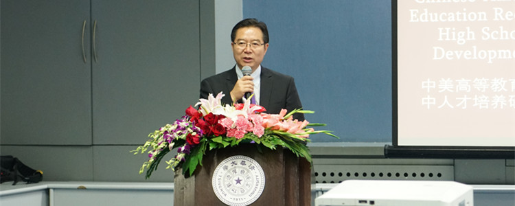 清华大学副校长杨斌致辞并做了专题报告。他介绍了清华大学百年来的发展历程及优秀人才的培养,重点为大家介绍了清华大学的招生体系、清华大学自主招生的情况以及中国高校招生制度的现状。