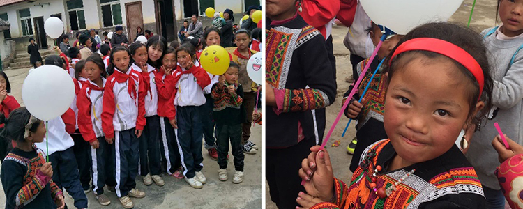 甲谷村小学地处大凉山腹地,交通闭塞,经济落后,生活条件十分艰苦。对于绝大部分没有玩过气球的孩子而言,初1608班师生的这份节日礼物给了孩子们莫大的惊喜。孩子们欢呼雀跃,奔走相告,欢乐的节日气氛引来大量村民围观。