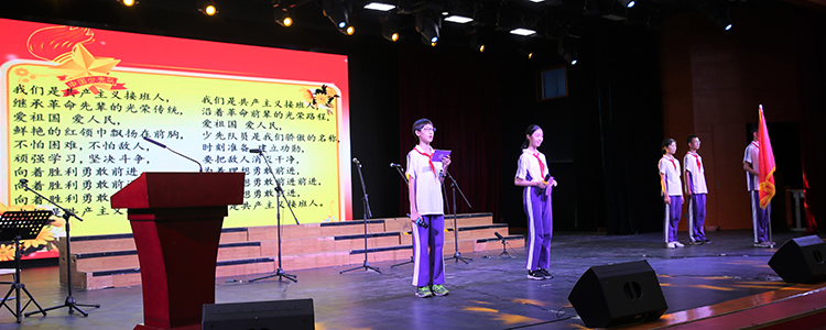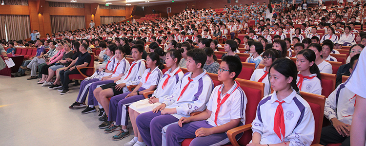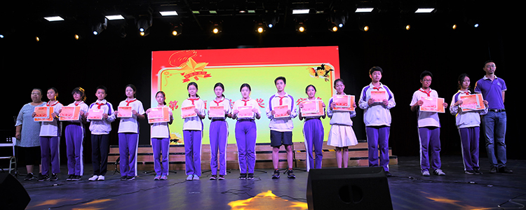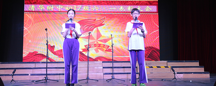 2018年6月1日下午,澳门博彩在线初17级“六一”表彰大会暨合唱比赛于报告厅举行。澳门博彩在线学生发展中心副主任王田、初17级年级组长张晓明、校少先队辅导员赵习以及初17级全体班主任老师及学生、家长600余人参加。