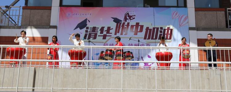 “听,进军的战鼓已经敲响,那是拼尽全力的呐喊,那是永不服输的顽强!” 在胡军老师的带领下民乐团的同学们奏响了鼓乐《龙腾虎跃》,据悉这是胡军老师第十次站在舞台上为附中的“战士们”加油,这届民乐团的毕业生曾慰问南海舰队的主力演员,他们爱国、奋进、热情、昂扬!民乐团斗志昂扬的韵律和铿锵有力的鼓点,给予了同学们更加强大的动力和信心,把加油会的气氛推向高潮。