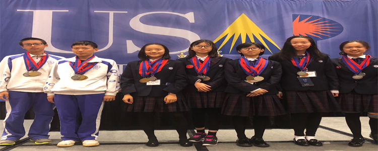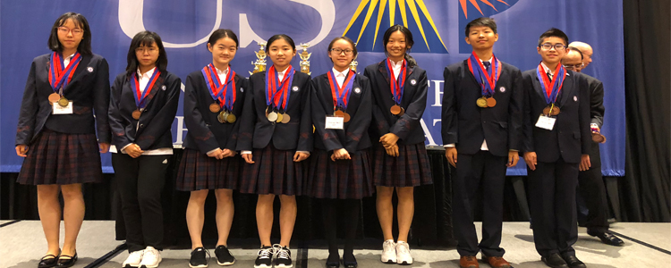 2018年5月16至21日,美国学术五项全能比赛美国赛(USAP Final 2018)在美国奥马哈举行。在教练赖婧灵老师的带领下,澳门网上博彩初二年级两支队伍共计15人参加团体赛,初一年级薛媛媛和初二年级肖晗蕾两人参加个人赛。最终,收获19金、27银、20铜的好成绩,共计66块奖牌,此外,田心洋同学在五科全能中以4金的优秀表现摘取个人总分金牌,范葭怡、赵菲朵、黄诗淇、薛宇涵、王晔崎、肖晗蕾获个人总分银牌,两支队伍分别获得美国赛国际赛区的团体银牌及铜牌。参赛学生17人无一人空手而归,成绩优异令其他学校纷纷赞叹。