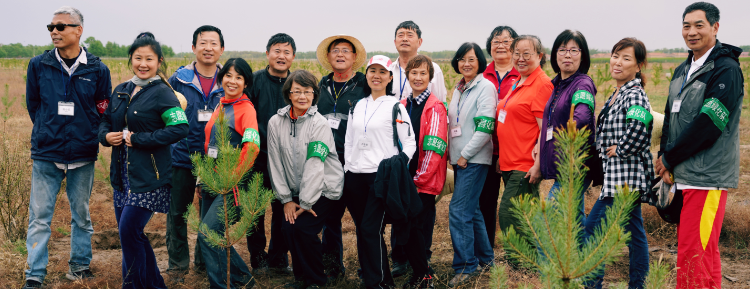 植树之前的第一项活动是向志愿者们进行植树绿化的情况介绍。在半个小时左右的介绍中,廖理纯校友讲了他坚持植树12年对抗沙漠化的作用以及多年来坚持用地表水灌溉,避免地下水污染的做法。他说,“坚持种树,对抗沙化,这件事直到20年、30年后都会非常有意义,能够造福子孙后代。我们今天种下的樟子松树种成活期可以达到300年。”