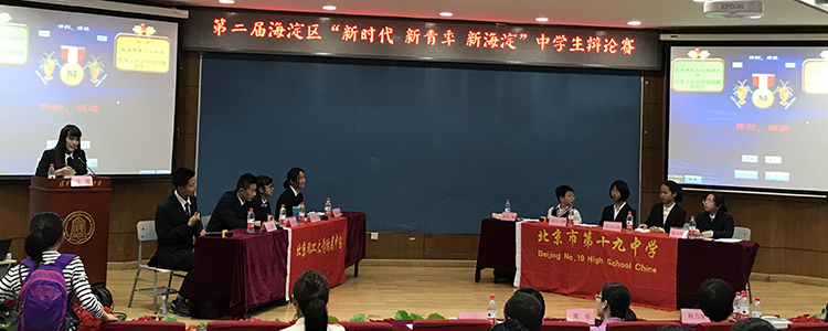 海淀区第二届中学生辩论赛第三轮小组赛也在当天于我校举行,来自海淀区40所学校的200余名选手在此展开激烈角逐。唇枪舌剑间是智慧的迸发,风云变幻间是思维的碰撞,双方辩手的风采和学识更是赢得了观众们的阵阵掌声。