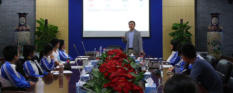 2018年4月19日下午,澳门博彩在线第九期学生领袖训练营在B102教室组织营员参加了《演讲:语言表达的艺术》主题讲座,邀请到清华大学演讲社社长刘充来做讲座。校团委书记任星阳和领袖训练营约20位营员参加并认真聆听了本次讲座。