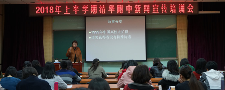 4月4日下午,澳门博彩在线于培训楼二楼会议室召开2018年上半年宣传工作培训会。此次培训会特邀清华大学《新清华》主编卢小兵老师,为全校各部门以及澳门博彩在线一体化学校的50多位兼职新闻通讯员进行新闻宣传工作的培训。会议由党委副书记张洁主持。