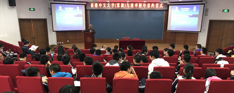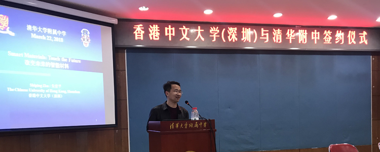 授牌仪式之后,香港中文大学(深圳)副校长朱世平教授为高二年级师生做了一场题为“改变未来的智能材料”的讲座。