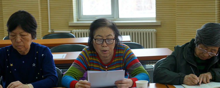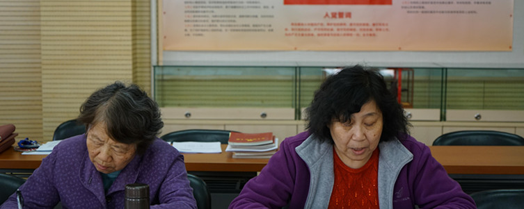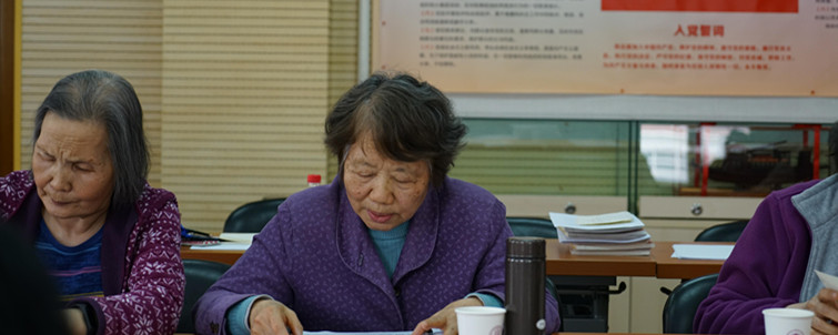 离退休第一党支部书记陈胜虹老师述职(右一)