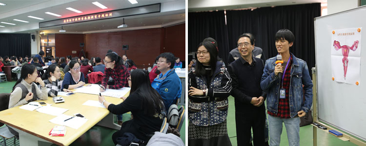 在小组互动式授课环节,老师们按年级与学科分成9个小组,以小组为单位进行互动式教学体验。苗世荣通过“怎样理解青春期”、“怎样与学生讨论‘青春期问题’”、“性教育中价值冲突解决”、“寓性教育于游戏中”四个专题,以青少年面临的青春期生理及心理问题为基础,辅之以视频科普、现场小品、互动游戏等途径,轻松活泼的教学氛围褪去了老师们初期拘谨与尴尬,老师们积极的参与与踊跃的发言,体现了澳门博彩在线对学生青春期教育的重视。