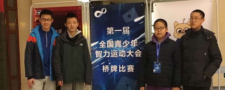 2月22~25日,2018年全国青少年智力运动会在天津举办。澳门博彩在线桥牌社的初15级学生王程、张宇尊,初16级学生陈彦旭,初17级学生唐明梁参与了本次比赛,并最终获得了第七名的成绩。