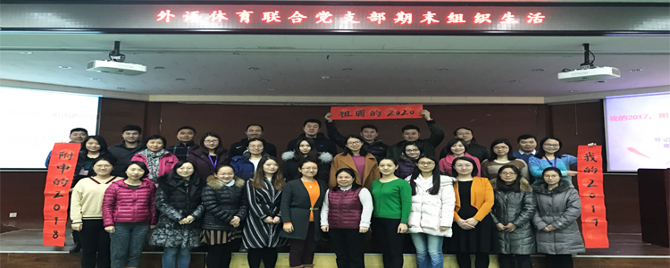 外语体育教育职员党支部在1月16日召开以“我的2017、附中的2018、祖国的2020”为题的特色组织生活。活动中以抽签方式分享了党员2017年所经历的各项“之最,以“你比我猜”的游戏为载体,熟悉新一年附中发展的关键词,以“蒙眼穿梭”的活动为载体,领会众志成城的意义,明确祖国在2020年将要实现的伟大目标。