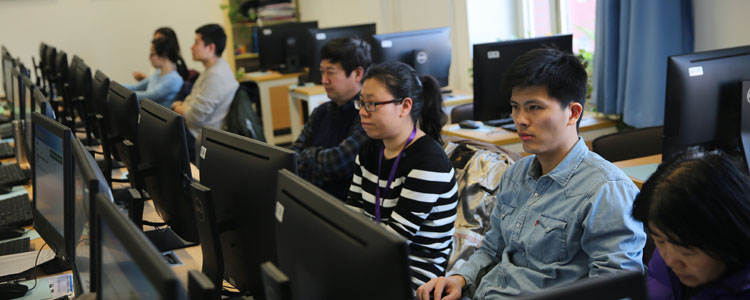 李天爽老师(右1)讲解综评系统操作