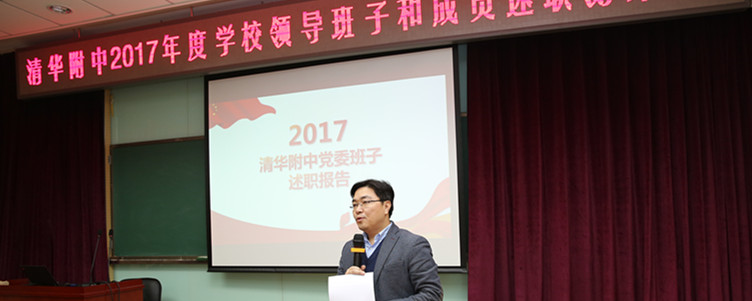 党委书记方妍代表澳门博彩在线党委班子做党委工作总结,全面介绍了2017年附中党建工作总体指导思想、工作特色以及取得的成效,从路线、底线、红线三条线详细介绍了中央巡视整改、党的十九大精神学习、思想政治工作、从严治党等重点工作。校长王殿军做行政领导班子述职汇报,重点介绍了本年度全面推进依法治校、教育教学、教师发展、行政后勤、国际教育、科学发展等各方面的收获和成绩并展望学校未来发展方向。