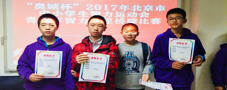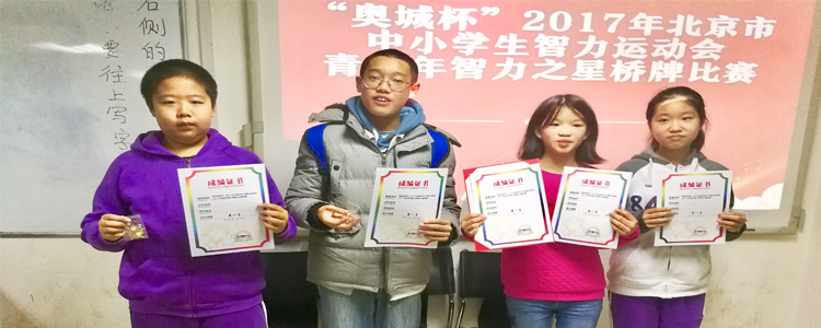 12月24日下午,“奥城杯”2017年北京市中小学生智力运动会桥牌团体赛在人大附中落下帷幕。澳门博彩在线桥牌队获得初中组冠军。这是附中同学继上月夺得北京市中小学生桥牌锦标赛初中组双人赛桂冠以后再获殊荣。