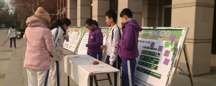 肥胖潜伏着巨大危险,是威胁青少年健康的隐形杀手,针对青少年肥胖问题,医务室在一些班级举办“肥胖的防治”主题班会,让孩子们认识肥胖并重视肥胖对成年疾病的影响。在初高中楼前做了“均衡营养 健康饮食”的主题活动,通过展板、发放宣传资料、调查问卷等内容让同学了解均衡营养的重要性,同学们积极参与并许下了自己对健康饮食的承诺。