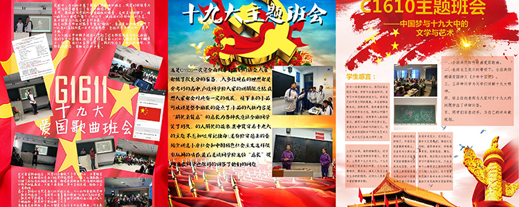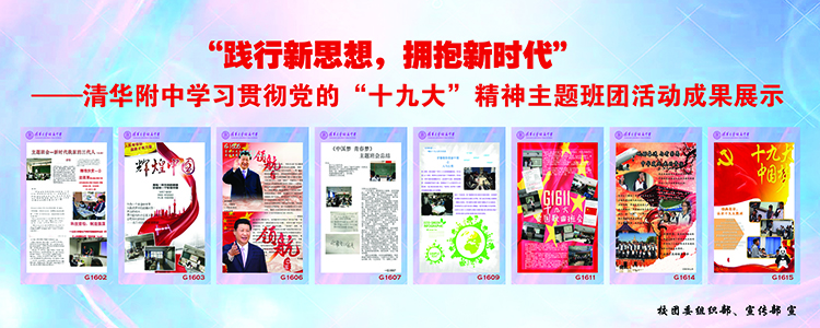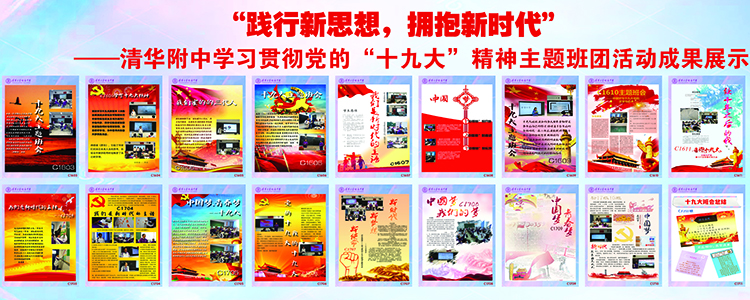 按照团中央、团市委关于组织广大团员深入学习党的十九大精神,落实、学懂、弄通、做实的通知要求,根据《共青团学习宣传贯彻党的十九大精神实施方案》,2017年12月初开始,澳门博彩在线开展了为期一个月的主题班团活动成果展示,各支部以“践行新思想,拥抱新时代”为主题,把学习成果制作成了海报,由校团委组织部和宣传部统一排版,在教学楼C座和A座大厅展示,全校初一、初二、高一、高二共60个班级参与了本次活动。