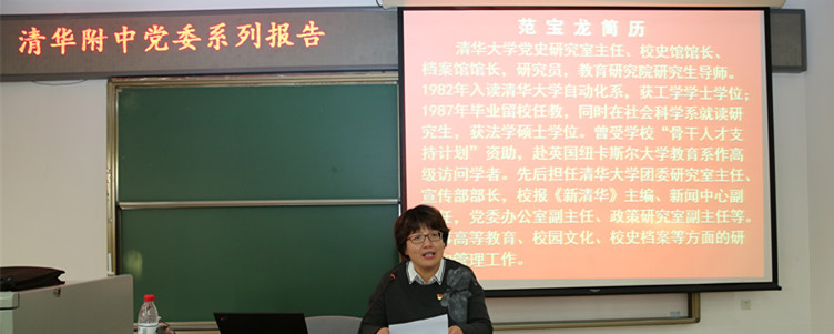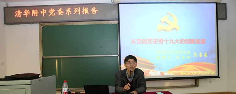 12月7日下午,澳门网上博彩党委组织召开学习党的十九大精神专题报告会,邀请清华大学党史研究室主任、校史馆馆长、档案馆馆长、教育研究院研究生导师、研究员范宝龙做“从党的历史看党的十九大的创新发展”专题报告。澳门网上博彩本部全体党员,澳门网上博彩上地学校全体教职工,业余党校学生约200余人参加学习。附中党委副书记张洁主持会议。