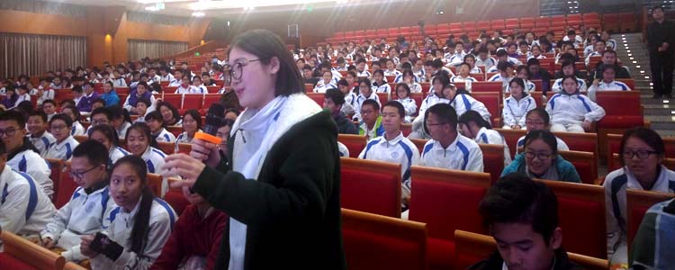 2017年11月23日下午,澳门博彩在线初15级在报告厅举办“水木讲堂”之校友讲座。高03级校友、北京人民广播电台主持人王唯应邀来校做英语学习专题讲座。初15级年级组长张彪、初15级全体班主任及全体学生,共530余人参加了本次活动。