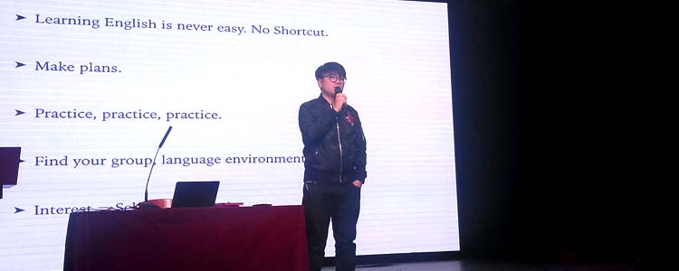 王唯结合自身经历,以幽默风趣的语言与同学们分享了自己英语学习的经验和感悟。他强调了培养兴趣和坚持练习在英语学习中的重要性,并从口语、发音、单词、词组、句子、自由表达、语感等方面为同学们的英语学习提出了具体的建议。