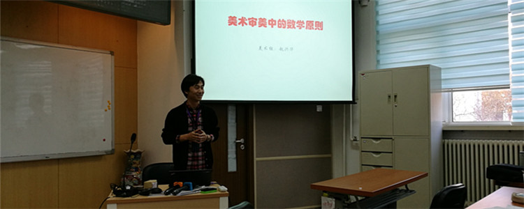 活动伊始,赵兴华老师展示了颜真卿和宋徽宗的书法图片,让老师们从感性的认识过渡到理性的分析。赵兴华老师从构图中的数学原则、造型中的数学原则、透视中的数学原则、当代艺术中的数学原则等四个方面向数学组老师们深入浅出地讲解了美术当中的数学原理。