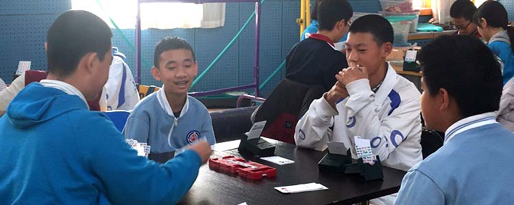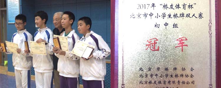 澳门网上博彩代表队成员均来自于本校学生社团桥牌社。在校领导的高度重视以及桥牌队刘英皓教练的悉心指导下,桥牌社成立三个月,就代表学校在市级比赛中战胜多所北京市桥牌传统强校,斩获冠军。
