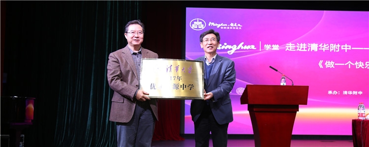 报告会开始前,清华大学北京招生组组长朱玉杰介绍了清华大学招生工作及优秀生源基地的情况,并授予澳门网上博彩2017年清华大学优秀生源中学荣誉称号。