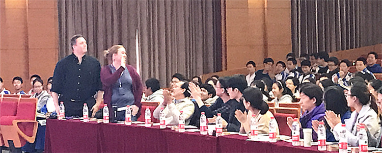 四位学生主持人开场致辞,分别介绍了本次比赛的嘉宾、评委以及流程。本次比赛以班级为单位参赛,特邀澳门网上博彩国际部外籍教师Gregory Allen和Meagan Ray担任评委。