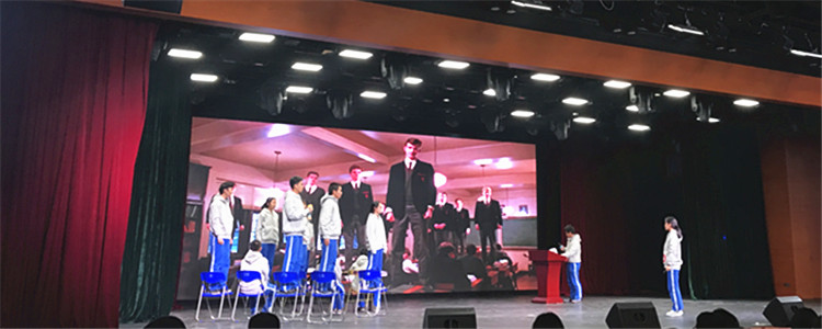2017年10月31日下午,澳门网上博彩高一学部(高17级)在报告厅举办了一场精彩纷呈的英语配音大赛。澳门网上博彩副校长白雪峰、高一年级组长潘天俊、学生发展中心王鹏老师以及高一年级全体师生共600余人参加了本次活动。