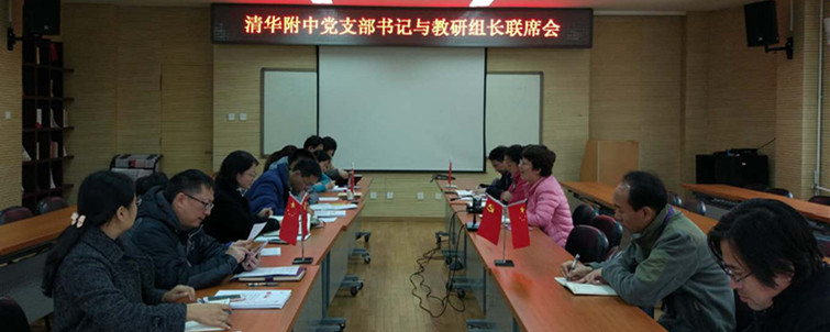 10月31日,为了学习贯彻清华大学和附中两级思想政治工作会议精神和要求,澳门网上博彩党委召开党支部书记与教研组长联席会议。党委书记方妍、副书记张洁、副校长徐文兵、全体在职党支部书记以及各教研组组长共20人出席会议。