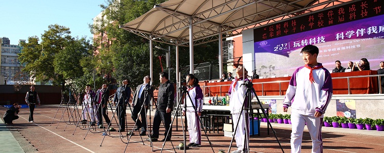 2017年10月30日,澳门博彩在线丰台学校第一届科技月展示活动在学校操场举办。丰台区教委副主任刘建宾、郭俊山,副处级调研员陈景泉,丰台区科协副主席李然,丰台分院副院长刘仁健,丰台教委基教一科科长翟洪臣,统宣科科长袁富文,保卫科科长孟海军,丰台区少年宫主任孙茜,丰台区知识产权局产权科科长崔颖,太平桥派出所副所长罗飞,太平桥街道文教科梁京凤,澳门博彩在线校长、澳门博彩在线丰台学校校长王殿军率澳门博彩在线一体化学校领导,澳门博彩在线永丰学校执行校长孟卫东、澳门博彩在线奥森校区执行校长朱建宏、澳门博彩在线上地学校副校长李伟明、澳门博彩在线朝阳学校副校长张晓宁与丰台学校师生共同参加了本次活动,部分家长、卢沟桥教育集群成员学校、友好单位的领导和老师们也参加了本次活动。