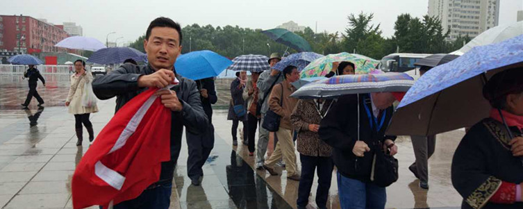 部分党员在展馆门前雨中合影