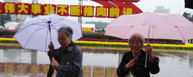 党员们雨中排队入馆