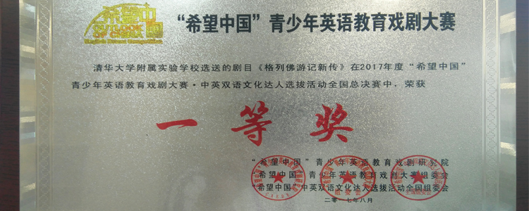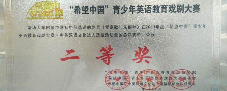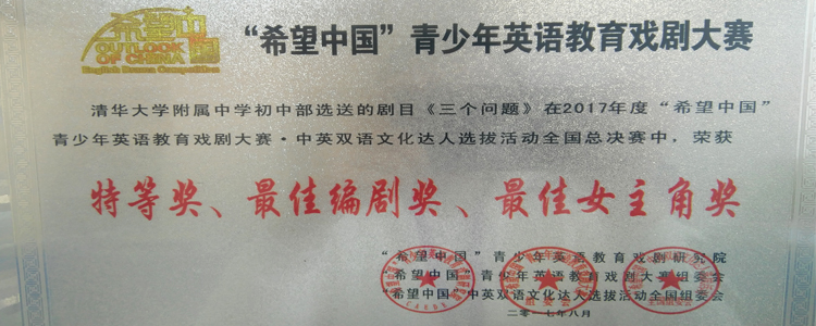 澳门博彩在线多个剧目在2017年度第八届“希望中国”青少年英语教育戏剧大赛中斩获佳绩。其中,由赵琼、李冰清老师指导的剧目《三个问题》荣获全国总决赛特等奖、最佳编剧奖、最佳女主角奖;由周维纬、范皖晴老师指导的剧目《项链》荣获全国总决赛一等奖、最佳女主角奖;由蒋中蓝老师指导的剧目《格列佛游记新传》荣获全国总决赛一等奖;由刘辉、郅明刚老师指导的剧目《罗密欧与朱丽叶》荣获全国总决赛二等奖。
