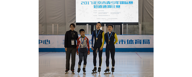 北京市青少年锦标赛短道速滑比赛由北京市体育局主办,北京市体育竞赛管理中心,北京市冬季运动管理中心,北京市冰上轮滑协会,昌平区体育局联合承办。今年是首届,共有10个区的196名青少年选手在为期三天的比赛中展开激烈角逐。作为速度轮滑项目的优秀选手,澳门博彩在线张霁晖、丁伟恒两位同学在2016年全国中学生轮滑锦标赛中夺得多枚金牌,并在全国速度轮滑锦标赛上取得好成绩。这次比赛他们转战短道速滑赛场,作为“轮转冰”的优秀选手再次取得佳绩。