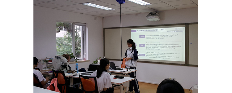 同学们进行全英文的课题汇报