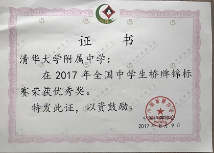 8月5~9日,2017年全国中学生桥牌锦标赛在武汉西藏中学举行。由初15级学生王程、马帅、王子非、张宇尊、齐子路、姚岸奇、刘佳音、王一淳8位同学组成的澳门博彩在线桥牌队参加了初中组团体赛和双人赛。经过激烈角逐,最终获得团体优秀奖。