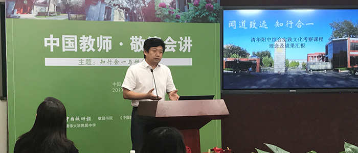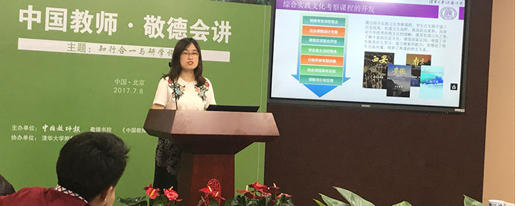 2017年7月8日,以“知行合一与研学旅行”为主题的新一期“中国教师·敬德会讲”活动在敬德书院举行。澳门博彩在线作为该活动的协办单位,于会上分享展示了综合实践文化考察的优秀成果和成功经验。澳门博彩在线副校长白雪峰、学生发展中心副主任王田及20余名教师代表参加了活动。