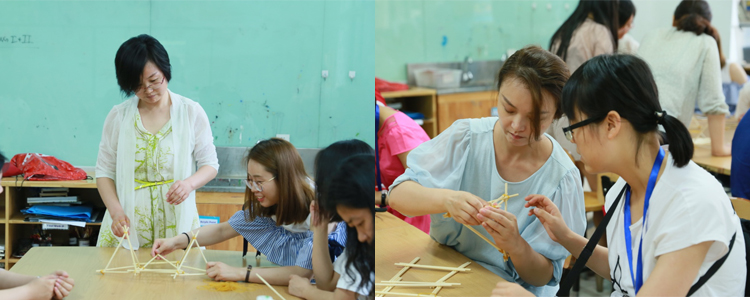 讲座结束后,新教师们分为五组,跨学科体验各学科的魅力。“琴诗悠唱”带领数学组和物理组的老师领略文人雅集,投壶游戏、诗词画猜、姓名刻章、古风吟唱、古筝弹奏,一句句诗情流淌心间、一段段曲韵奏响华年;“筷子搭桥”活动中,语文组新教师在物理老师的带领下,以筷子和皮筋为基础“建材”,搭建起属于自己的桥梁,并通过实验分析其受力强度,领略物理力学的魅力;“化学试验室”里,化学老师指导英语组的老师们进行了“蓝瓶子”和“大象牙膏”两项实验,感受生活中的趣味化学;“艺术与苹果”将教室变为画室,美术老师讲解中西绘画风格,数学、政史地组的老师们拿起画笔,描摹自己眼前的红苹果,各不相同的习作作品也展现了新教师们丰富的内心世界;“我与校园捉迷藏”中,化学、生物、音体美组的老师们进行校园定向越野,与校园地标合影,留下美好记忆。在学科魅力体验完毕之后,各学科派3至5名代表前往校史馆参观校史,并开展有趣的活动,体验澳门网上博彩栉风沐雨的百年历程,感受澳门网上博彩人自强不息的精神。