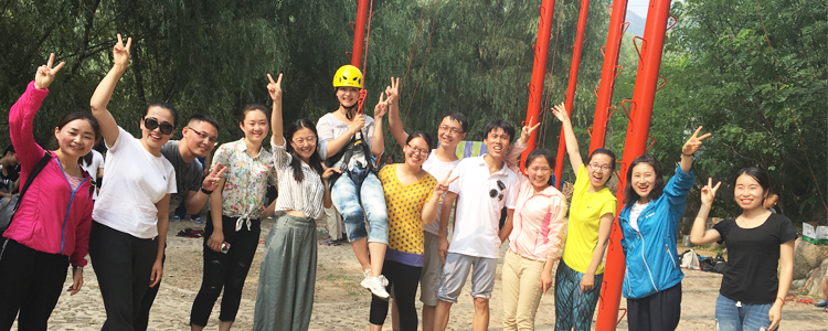 “高空体验”是本次拓展的重头戏,它需要个人顽强的心理素质与战胜自己的勇气,同时也需要同伴的鼓舞。