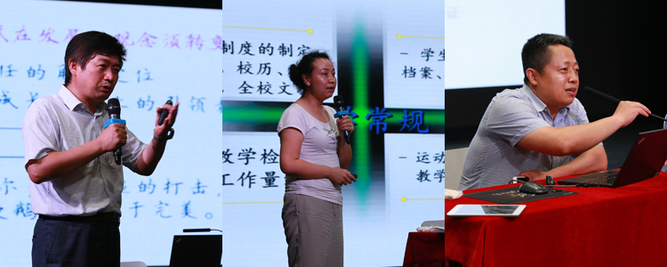 在学校制度专题的培训中,白雪峰副校长分享的主题是《让每位学生都能以最适合自己的方式成长》,教学管理与研究中心张苏主任分享的主题是《立志为师,甘于奉献》,资源保障中心孙书明副主任分享的主题是《附中信息化教学办公环境》。