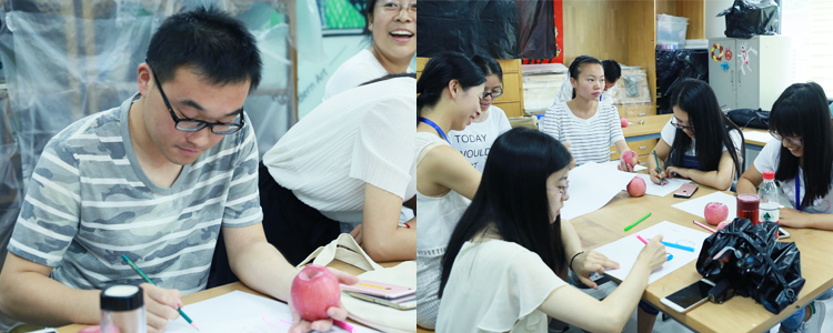 7月17日下午,附中新教师分组在心理教室进行培训。大家被分为3组,以滚雪球的方式进行自我介绍,每位老师在介绍的过程中彼此留下了深刻的印象。8位老师轮流观察并找出自己的苹果,这个过程引发了各位老师对教育深深的思考。最后一个游戏是在老师的指导下闭眼折纸,这个过程模拟了教师上课的几种情况,让教师深深体会到了互动和备课的重要性。