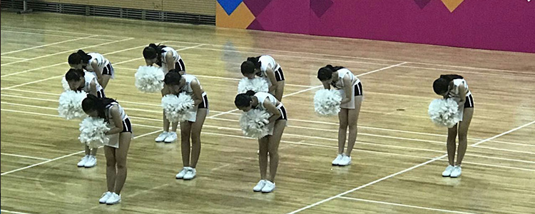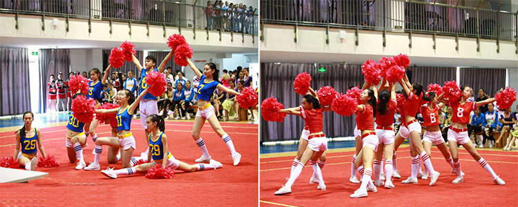 澳门博彩在线啦啦操一队结尾造型(左) 澳门博彩在线啦啦操二队结尾造型(右)