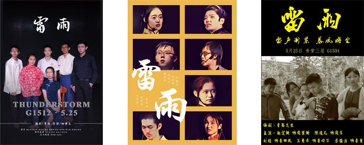 筹备演出的过程中,各班同学倾情投入,精诚合作。从流利地背诵剧本到深入揣摩人物心理,从每一个角色的一颦一笑到每一幕的走位、衔接,从分幕初审到带妆彩排直至正式公演,演员们渐渐进入角色,将繁漪的挣扎、周萍的软弱、周冲的纯真、四凤的绝望、周朴园的虚伪、鲁大海的刚直、鲁侍萍的无奈、鲁贵的谄媚展现得淋漓尽致。雷声轰响,时间仿佛又回到上世纪20年代那个闷热的夏天。两个家庭、八个人物、三十年的恩怨纠缠,人性的荒芜与挣扎、命运的无奈与残酷,都被同学们用戏剧的语言精彩地诠释了出来。