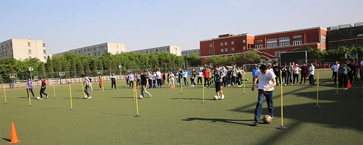 在学生比赛项目全部结束后,澳门网上博彩工会组织了一场教职工“足球绕杆往返接力跑比赛”,10个工会小组,每个工会小组推选8人代表本组参加比赛。