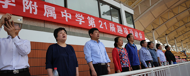 参加开幕式的领导与全场师生一起升国旗唱国歌