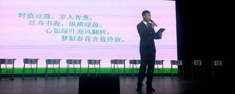 在活动的各环节中,还穿插了诗歌的朗诵。这些朗诵的诗歌全是学生们的原创,配着暖人激昂的音乐,将整个会场的气氛推向了一个又一个高潮。